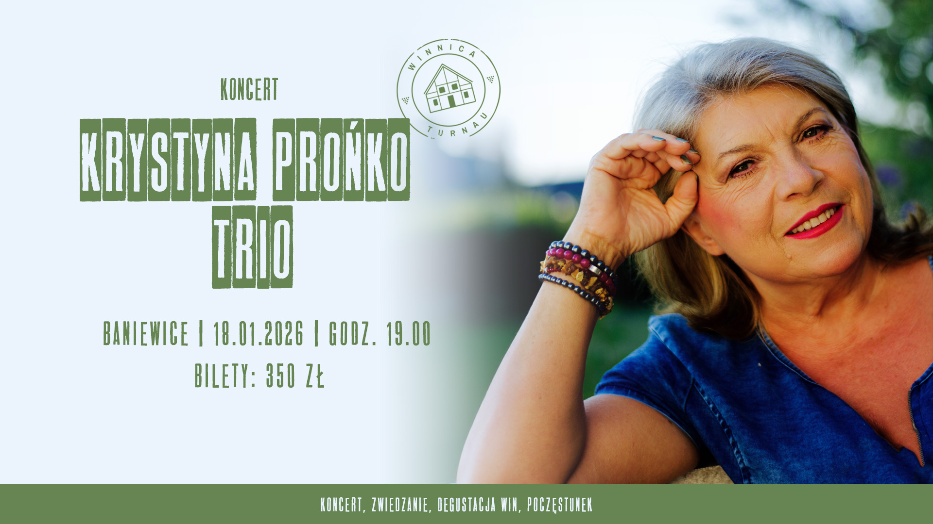 Muzyczne wydarzenia w nowym 2026 roku rozpoczniemy mocnym akcentem – koncertem Krystyny Prońko, właścicielki jednego z najbardziej rozpoznawalnych głosów polskiej piosenki. Artystka od dziesięcioleci zachwyca publiczność swoim warsztatem i sceniczną charyzmą. W dorobku ma niezapomniane polskie hity, takie jak „Deszcz w Cisnej”, „Jesteś lekiem na całe zło”, „Małe tęsknoty”, „Złość”, „Poranne łzy” czy „Papierowe ptaki”. Jej występy są gwarancją rozrywki na najwyższym poziomie.