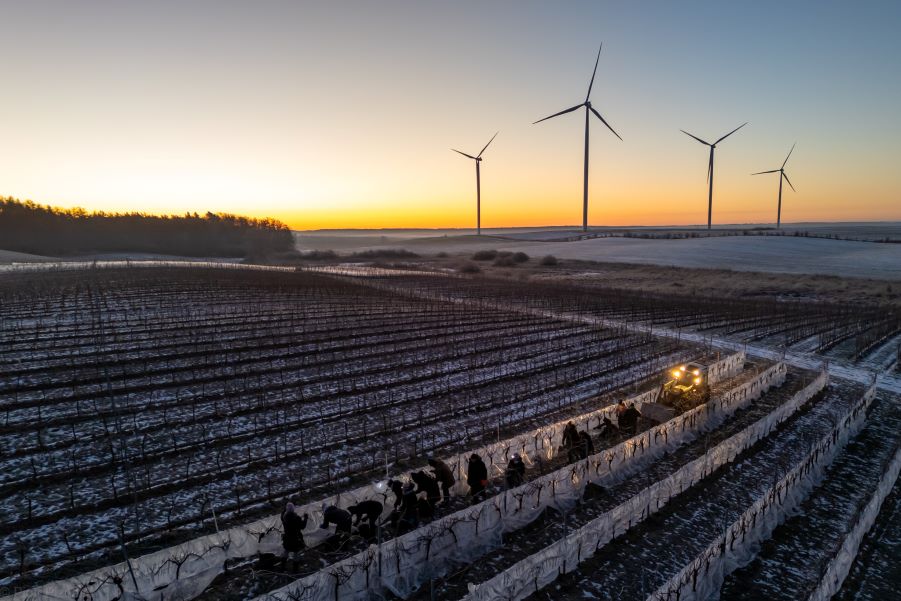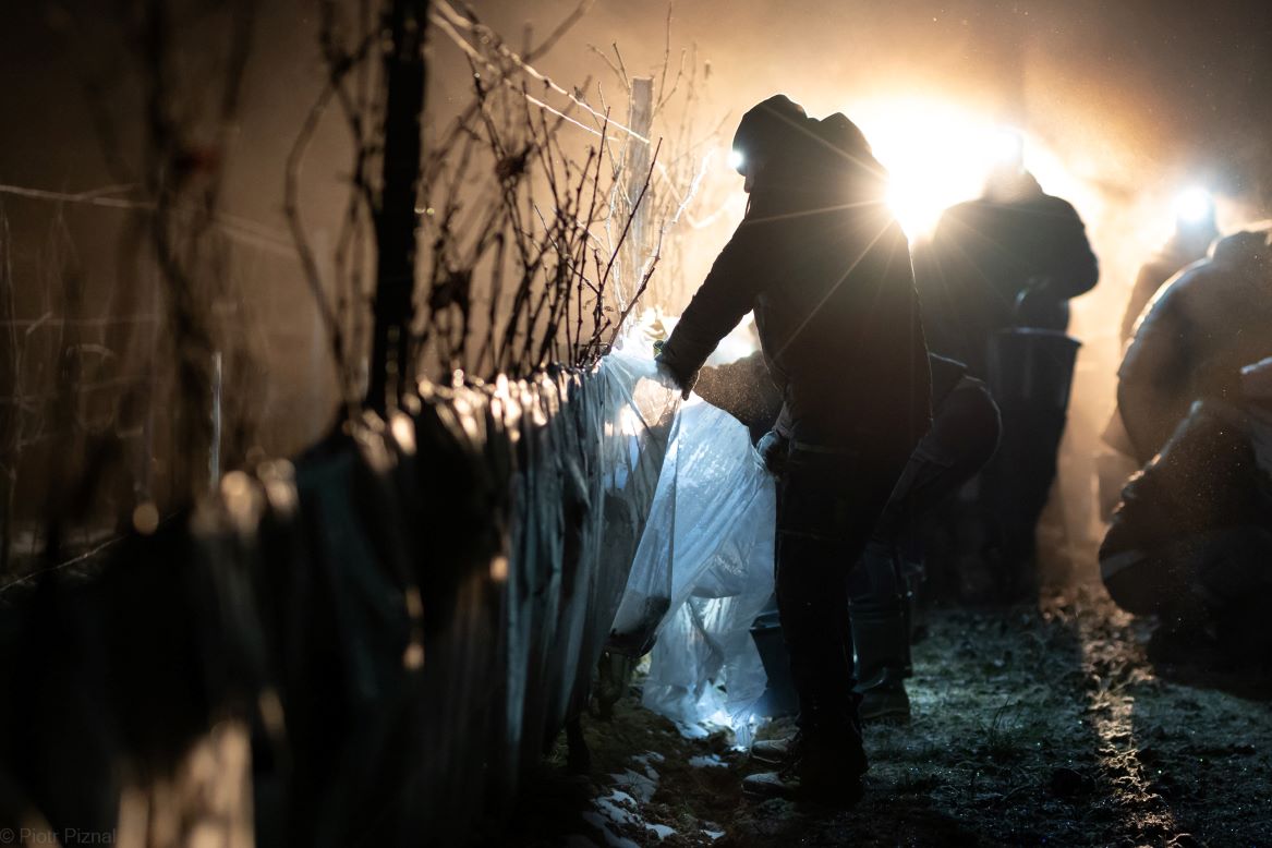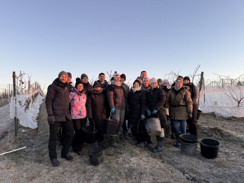 We did it! Yesterday at 4:00 in Baniewice the temperature dropped to -10 degrees. This meant one thing: preparations for the harvest! The harvest began at 5:00, and right after that we started pressing the grapes. We are very excited because for the first time in the history of our vineyard we harvested frozen red grapes - cabernet cortis. In total we harvested 1224 kg of cabernet cortis and 728 kg of johanniter grapes. Fermentation has already started. Thank you to everyone who joined us on this special February morning.