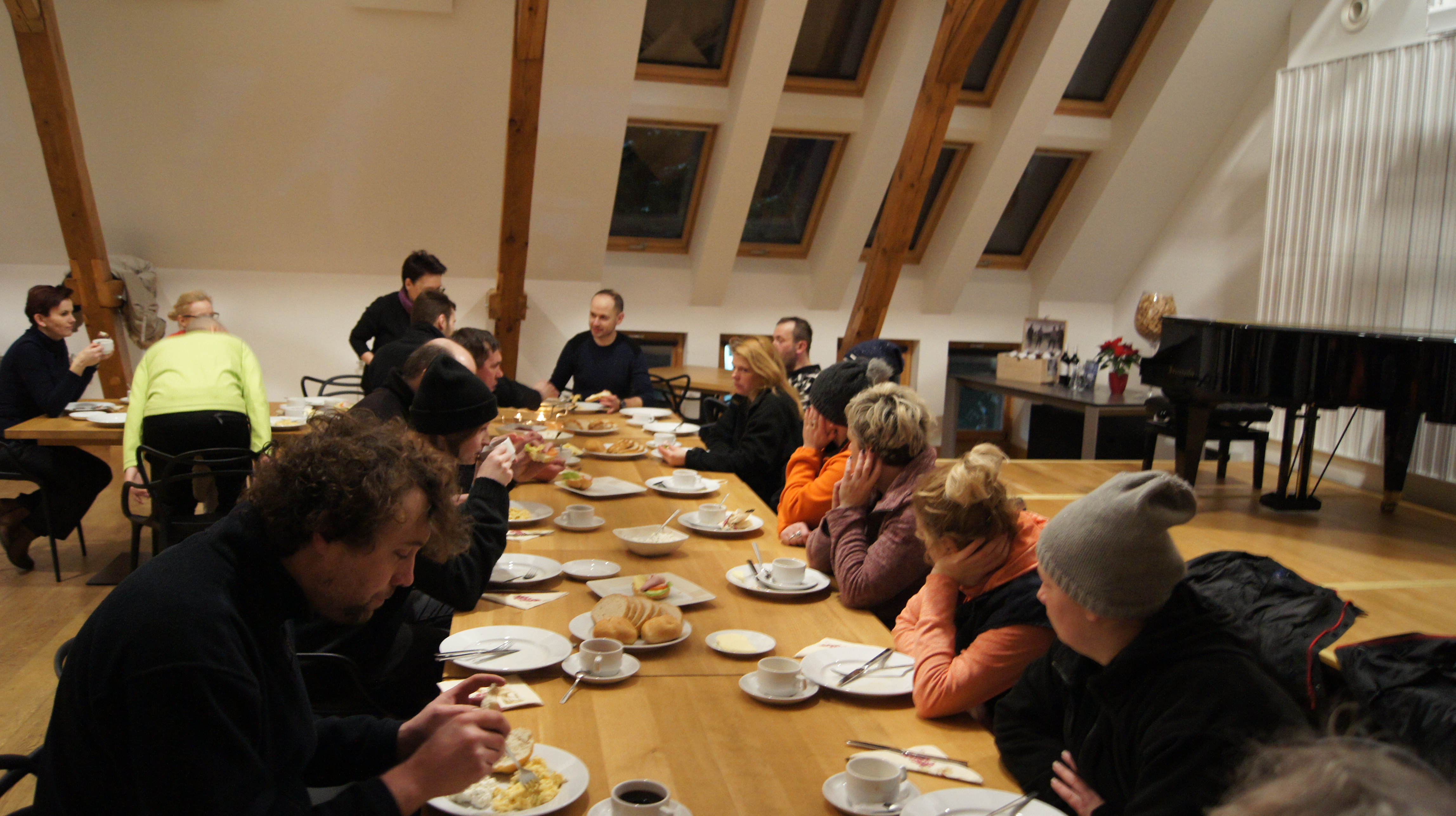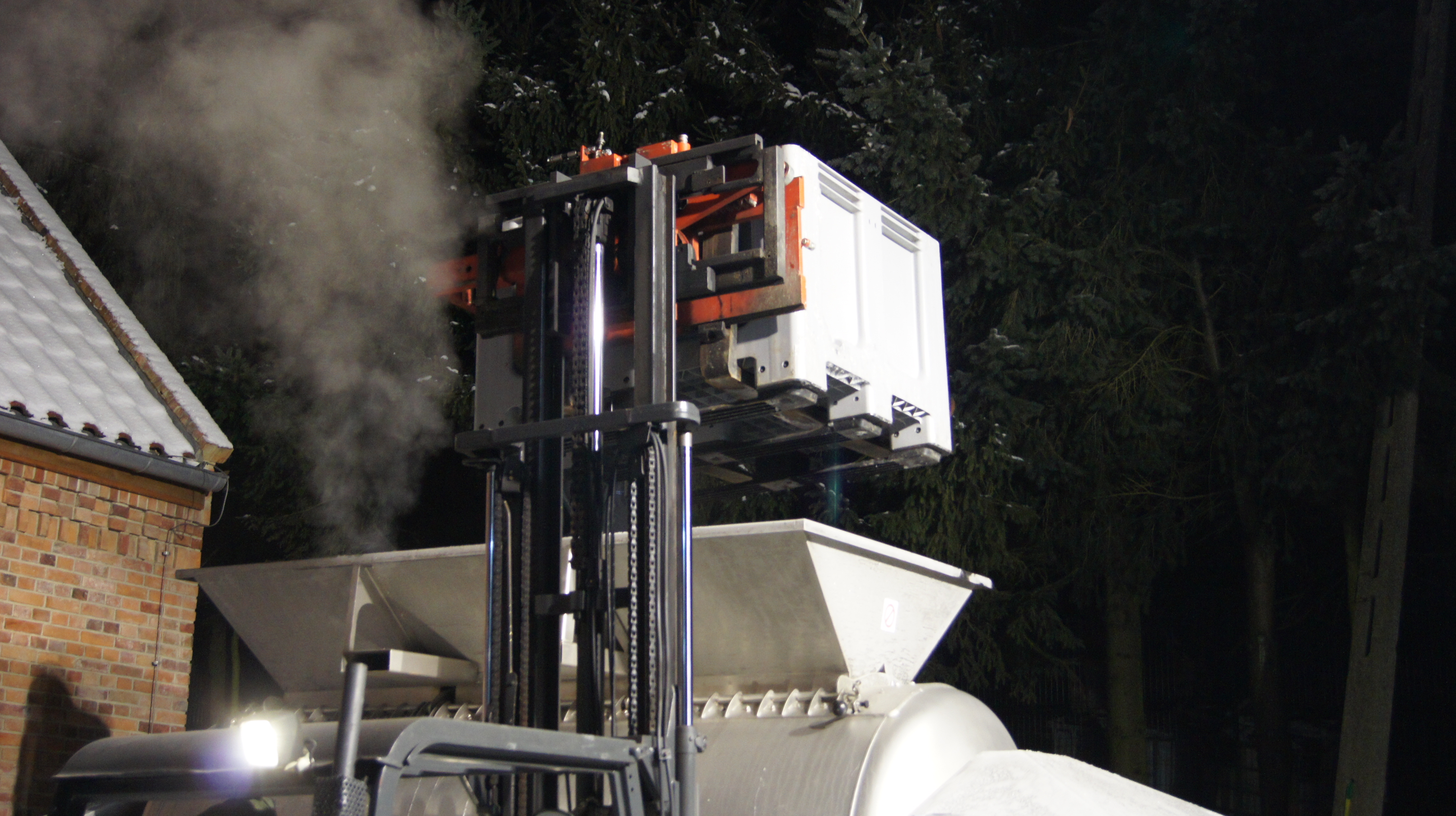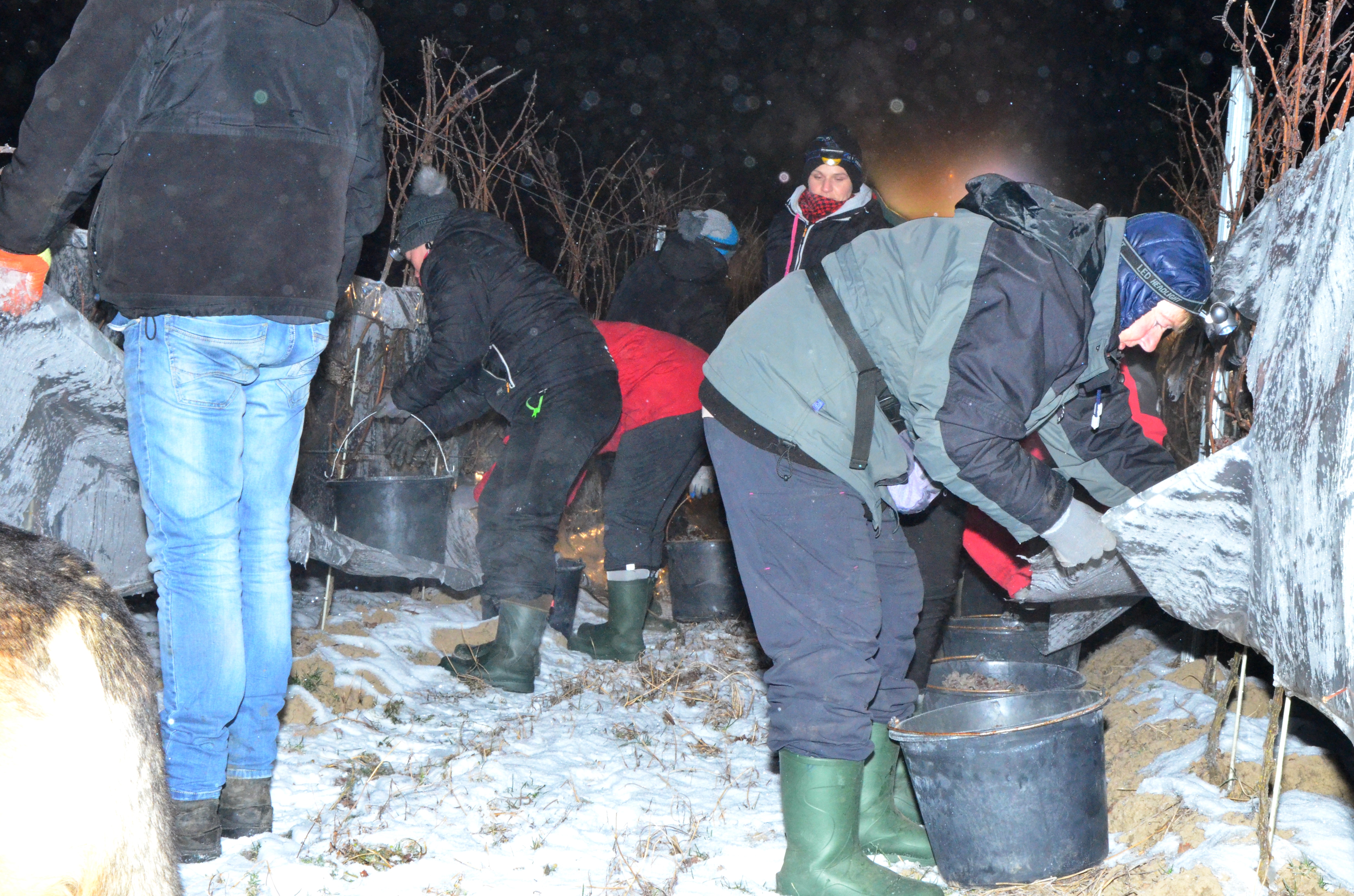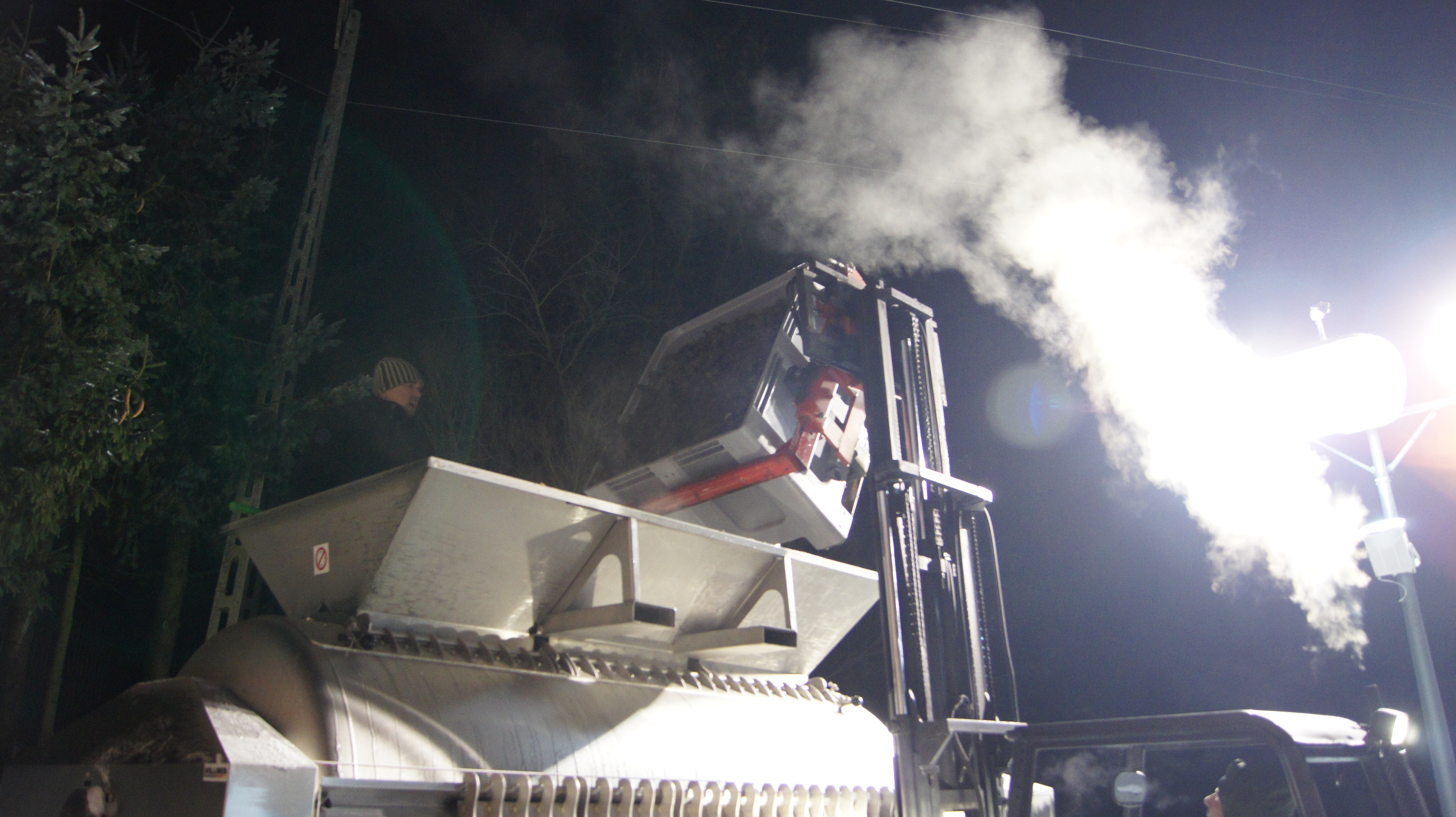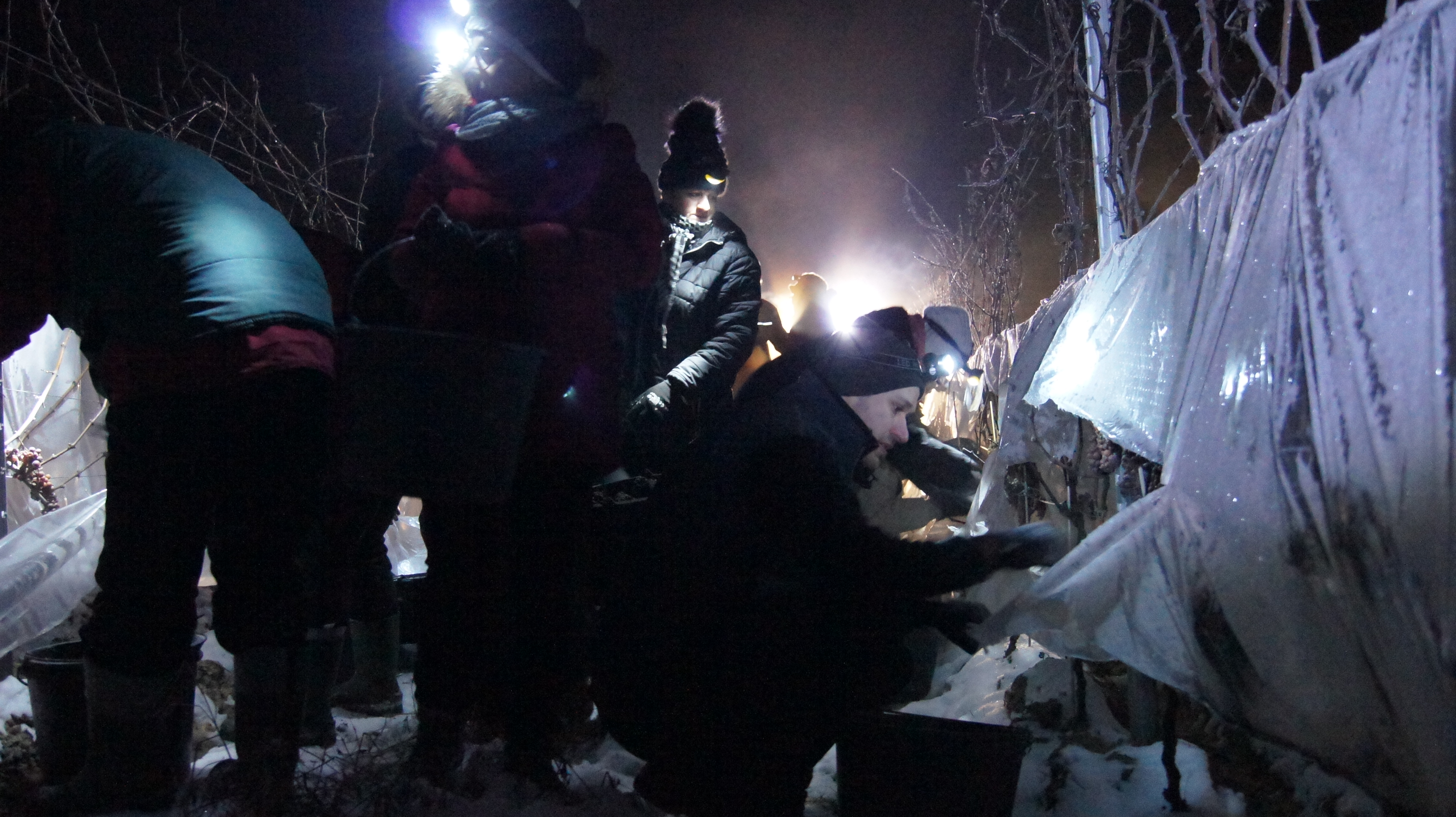 On the morning of February 7, our enologist, Frank Faust, decided that the grapes were frozen enough and at 4 in the morning harvest began.