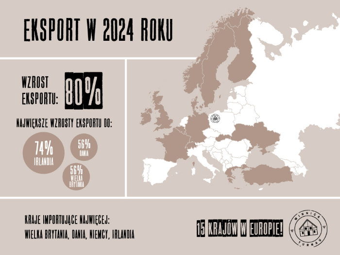 A teraz dane, które śledzimy z mieszaniną zaciekawienia i optymizmu. Eksport naszych win pobił w ostatnim roku kolejny rekord, osiągając wzrost aż 80%. To bardzo cieszy, choć wiemy doskonale, że jesteśmy jeszcze na początku drogi budowania marki „polskie wino” w Europie. Jesteśmy zadowoleni, że systematycznie budujemy rozpoznawalność naszych win wśród zagranicznych importerów, właścicieli restauracji i poszukiwaczy nowych, mniej oczywistych regionów winiarskich.