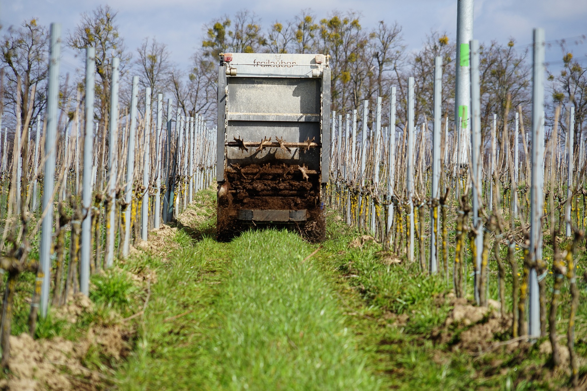 Ekologiczna uprawa oznacza m.in. brak jakichkolwiek sztucznych nawozów stosowanych w winnicy. Zamiast nich rozsypujemy w międzyrzędziach naturalny humus z rozdrobnionej słomy. Zawiera dużo substancji organicznych, azotu i próchnicy, które poprawiają kondycję gleby, a także użyźniają ją, zaopatrując w fosfor i sprawiając, że lepiej wchłania wodę.