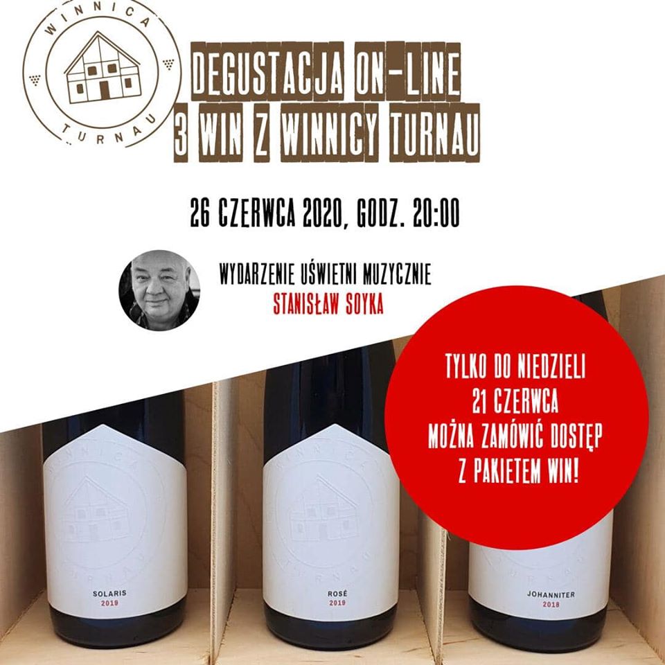 Uprzejmie przypominamy, że jeszcze tylko do najbliższej niedzieli - 21 czerwca - można zamówić degustacyjny zestaw win wraz z biletem wstępu na zamkniętą degustację online z muzycznym udziałem Stanisława Soyki.