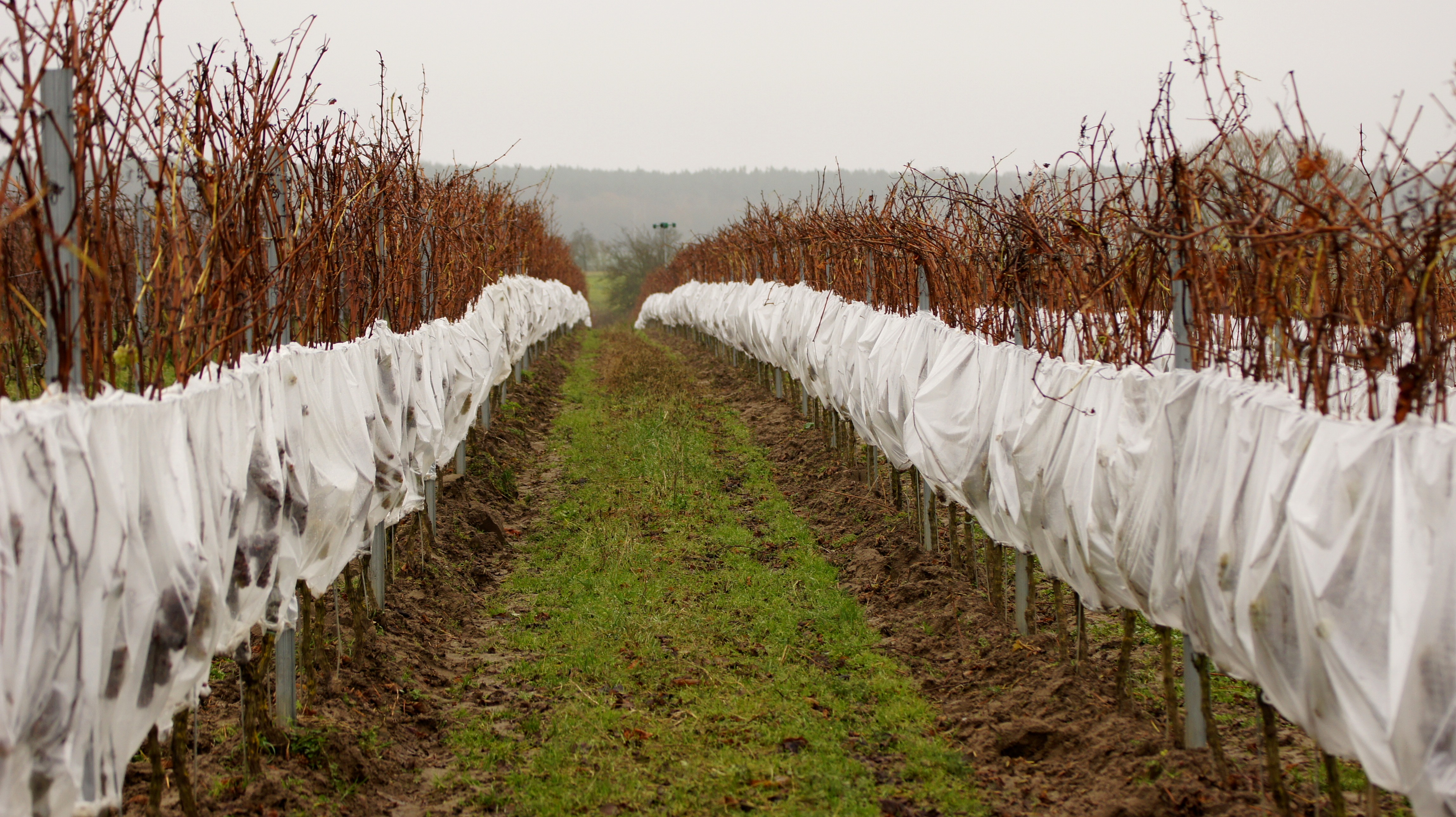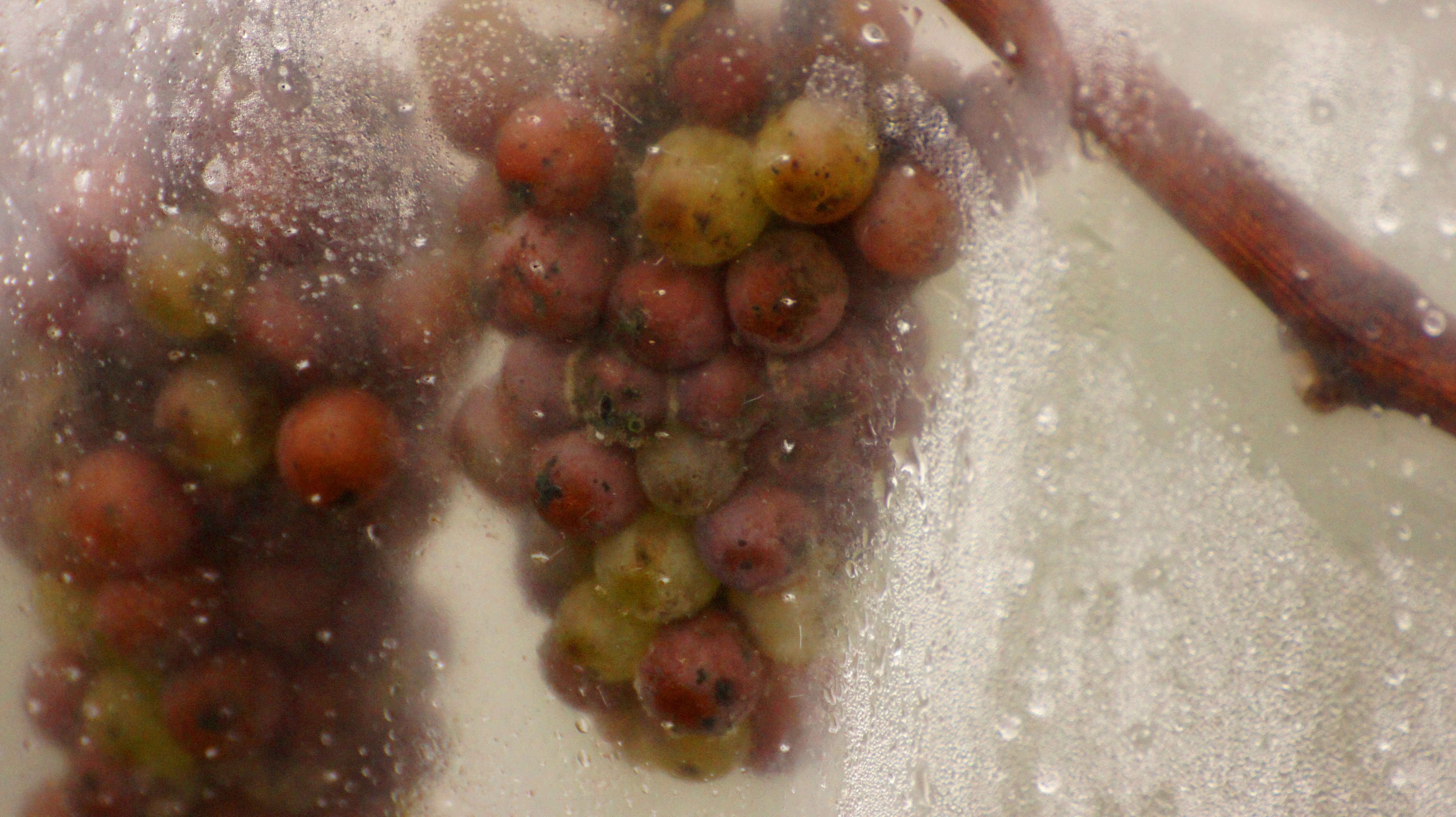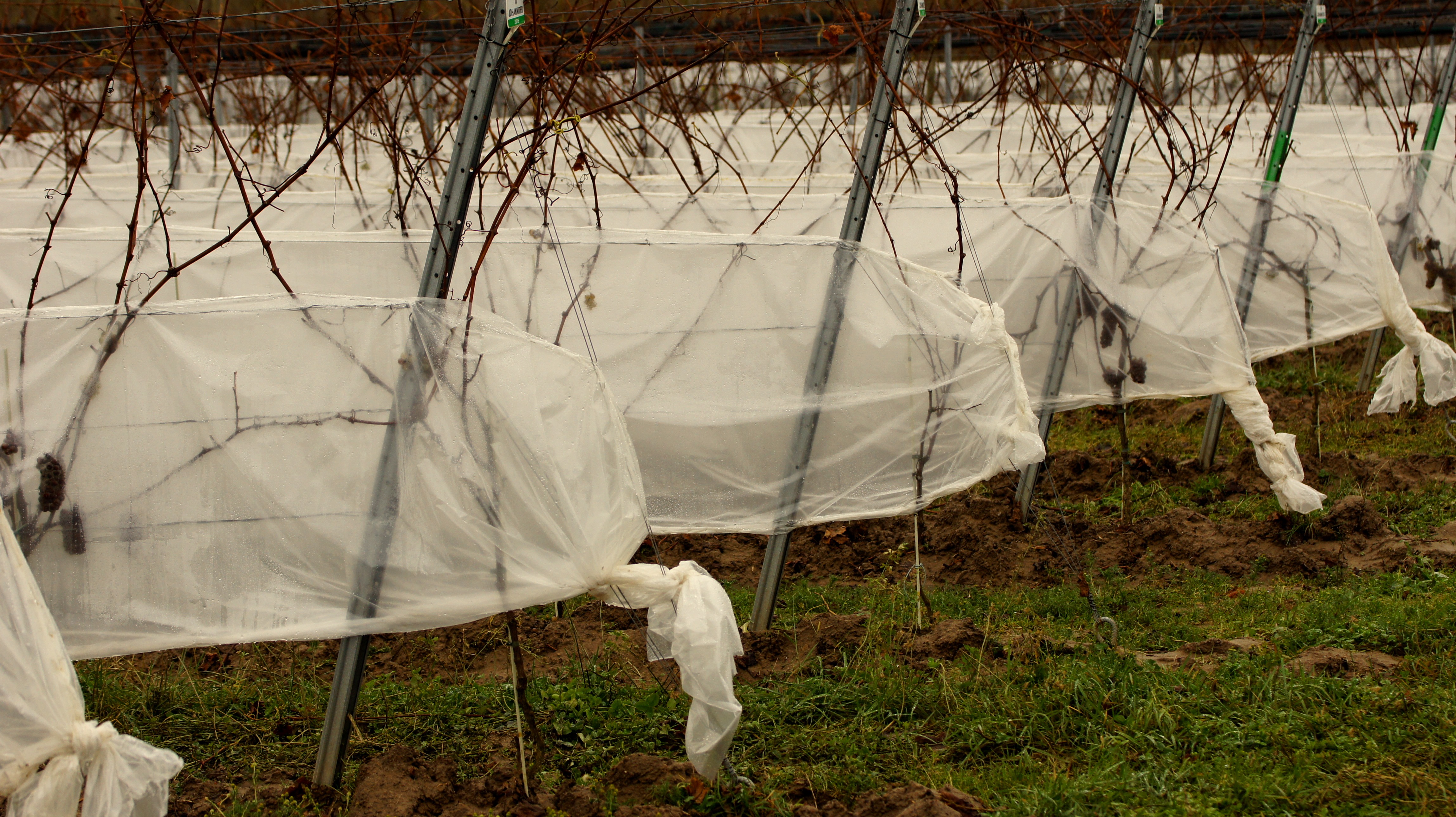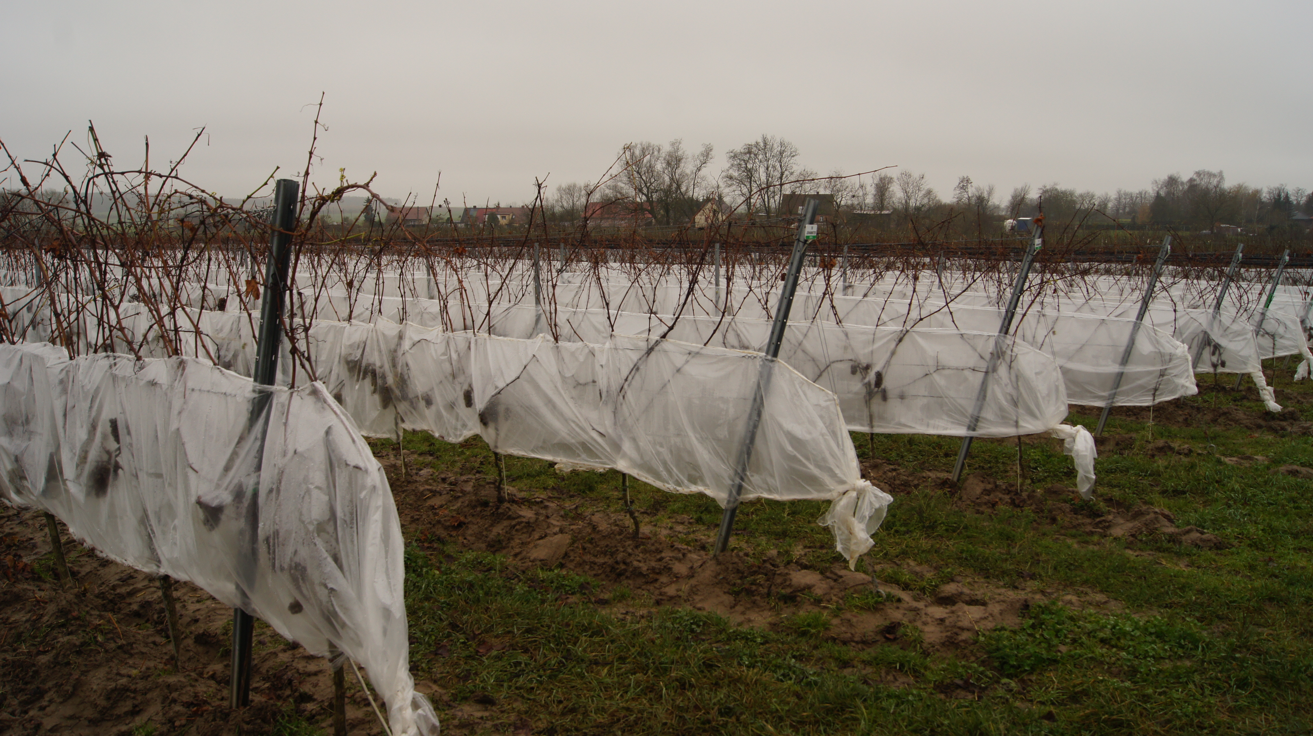 W tym roku pozostawiliśmy ponownie grona odmiany johanniter, które pod folią będą czekać na siarczyste mrozy. Potrzebne jest kilka dni z temperaturą ok. -8 stopni, żeby winogrona zamarzły. Następnie zamrożone grona przewieziemy do winiarni, gdzie zostaną poddane troskliwej obróbce.