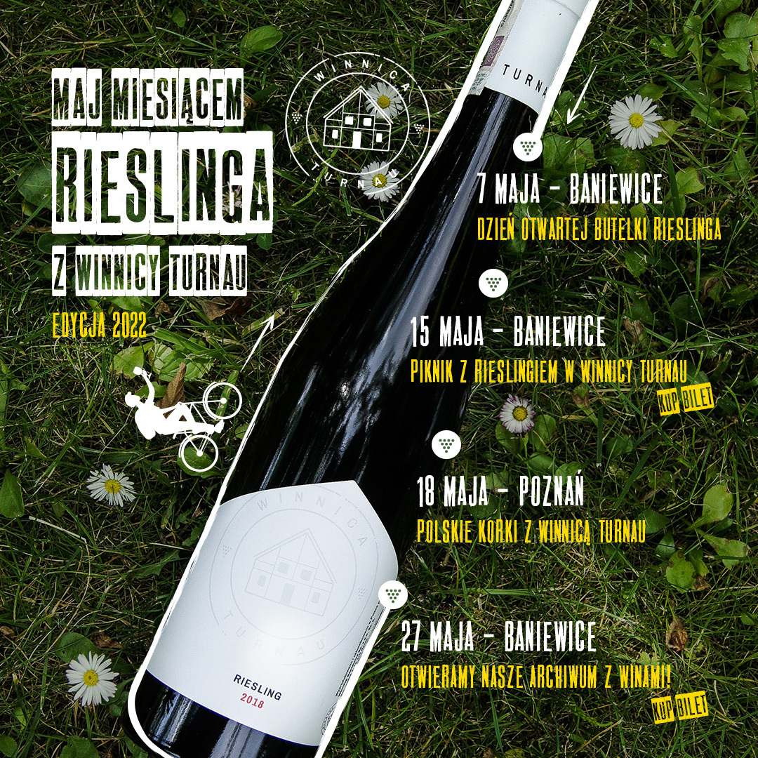 Rusza kolejna odsłona akcji „Maj miesiącem Rieslinga”. Jak zwykle przygotowaliśmy dla Państwa arcyciekawe wydarzenia, tym razem nie tylko w Baniewicach!