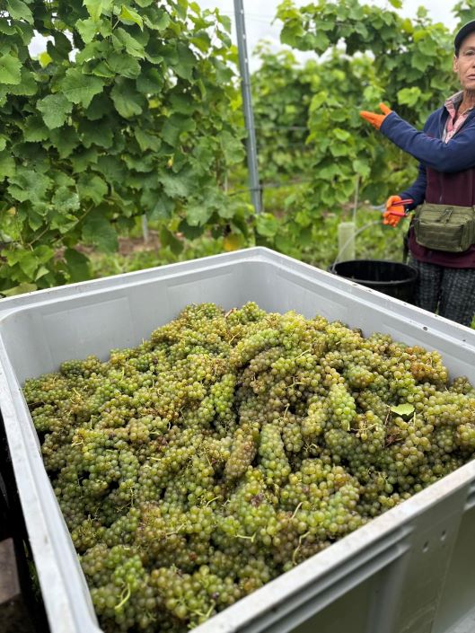 Grona solarisa już w większości trafiły do winiarni, gdzie powoli rusza fermentacja. Pogoda w tym roku miewała skrajne nastroje, ale jesteśmy bardzo zadowoleni z wydajności i jakości głównej pod względem areału odmiany w naszej winnicy.