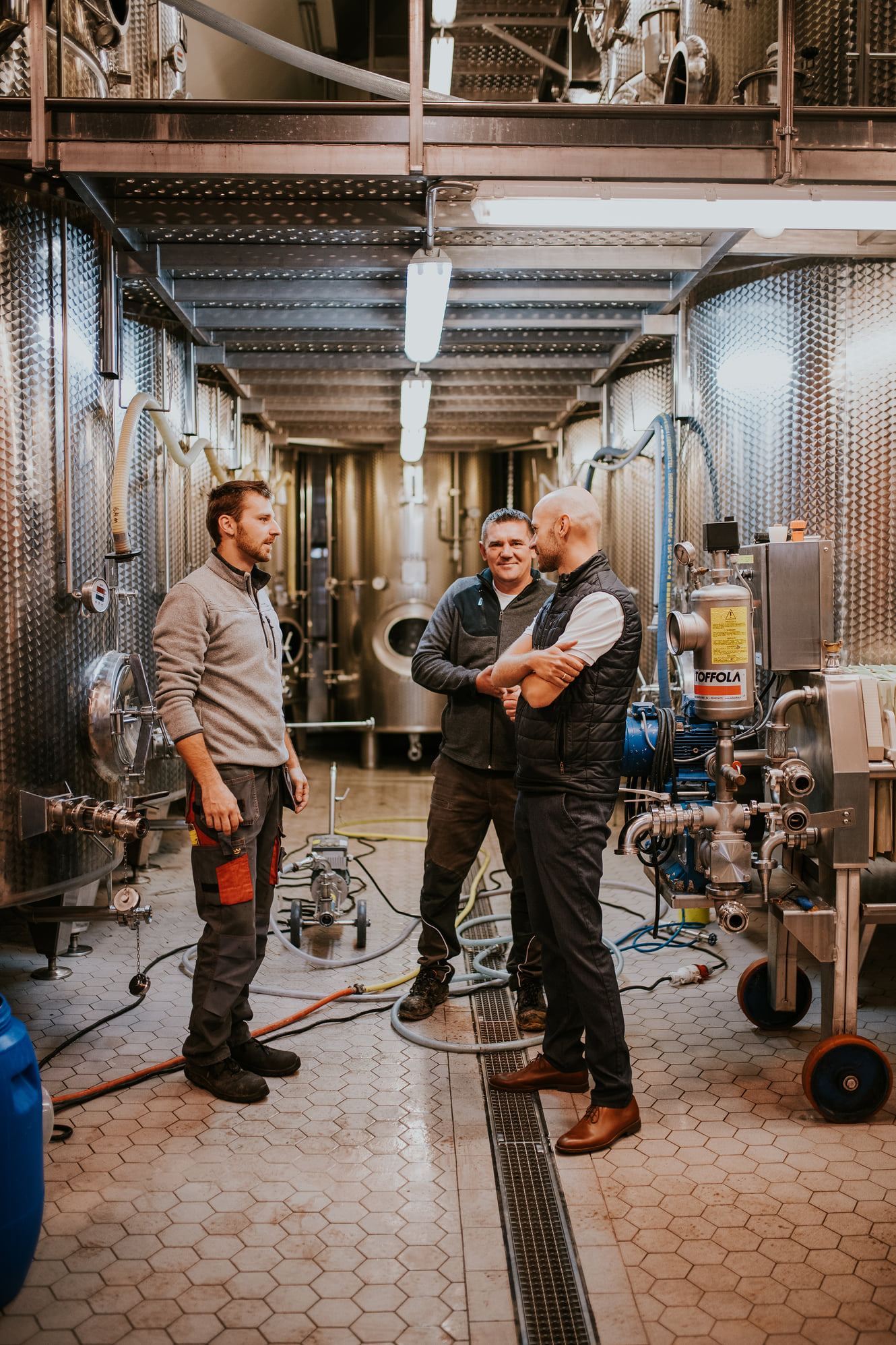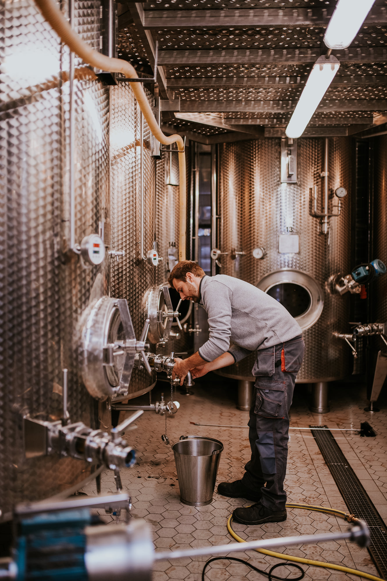 Wina czerwone przechodzą właśnie fermentację malolaktyczną, która je zaokrągli, redukując nieco kwasowość. Część win z rocznika 2021 zlewamy znad osadu drożdżowego, a niektóre już wkrótce powędrują do beczek. Zwolnić im miejsce muszą poprzednie roczniki, które szykują się do butelkowania.