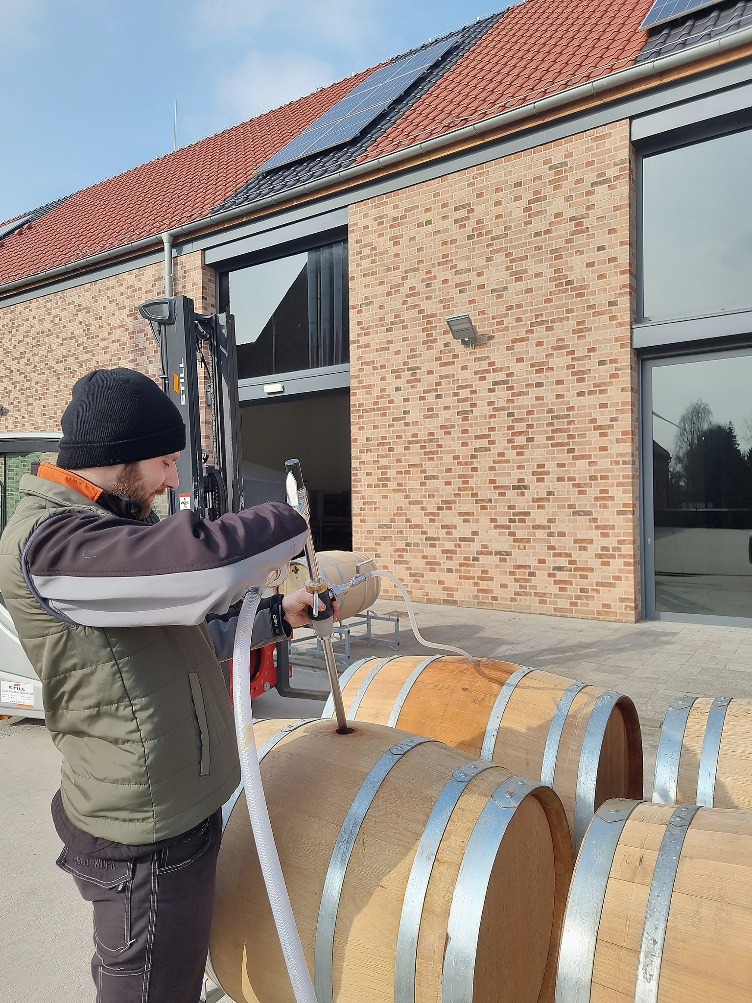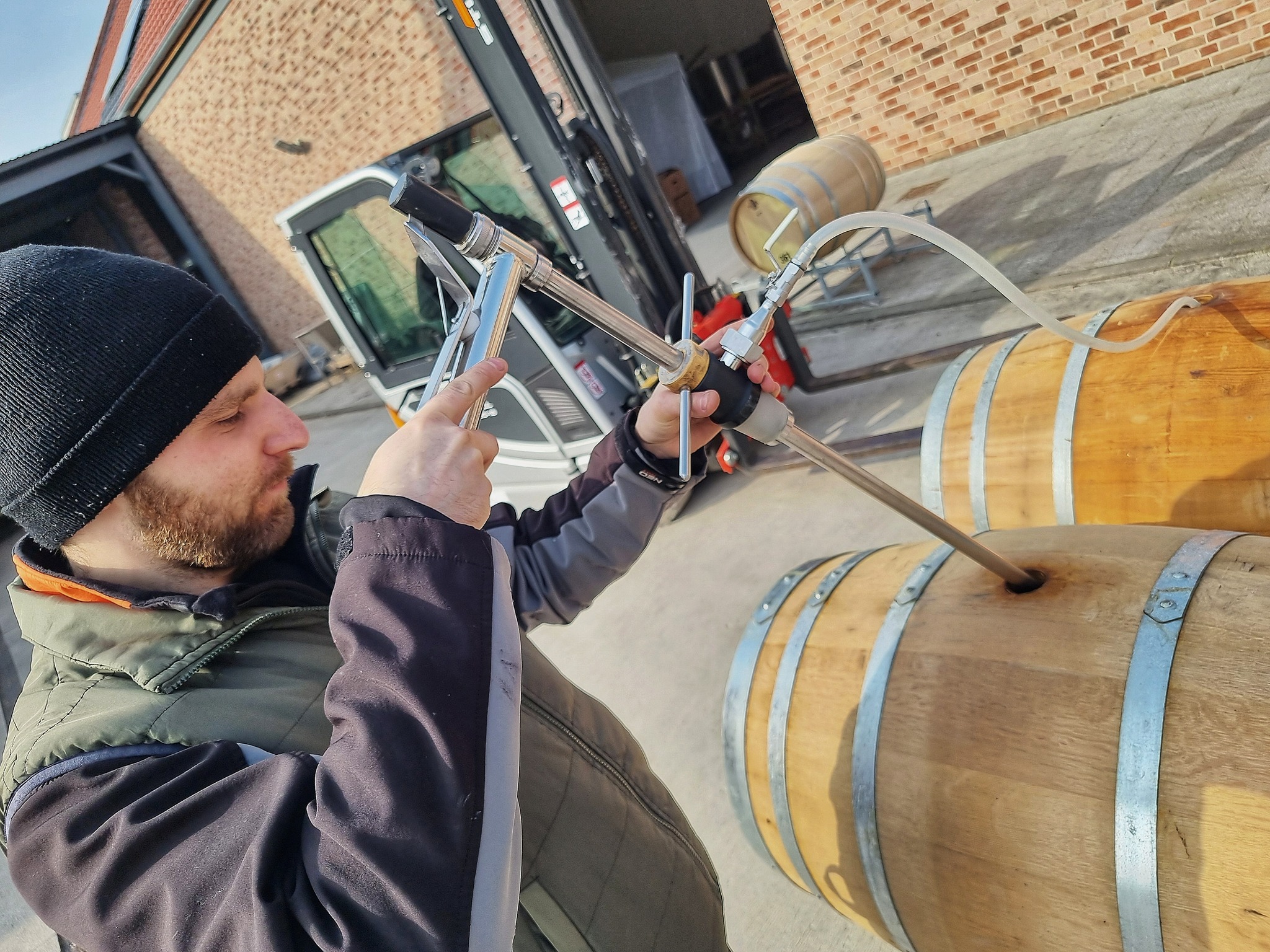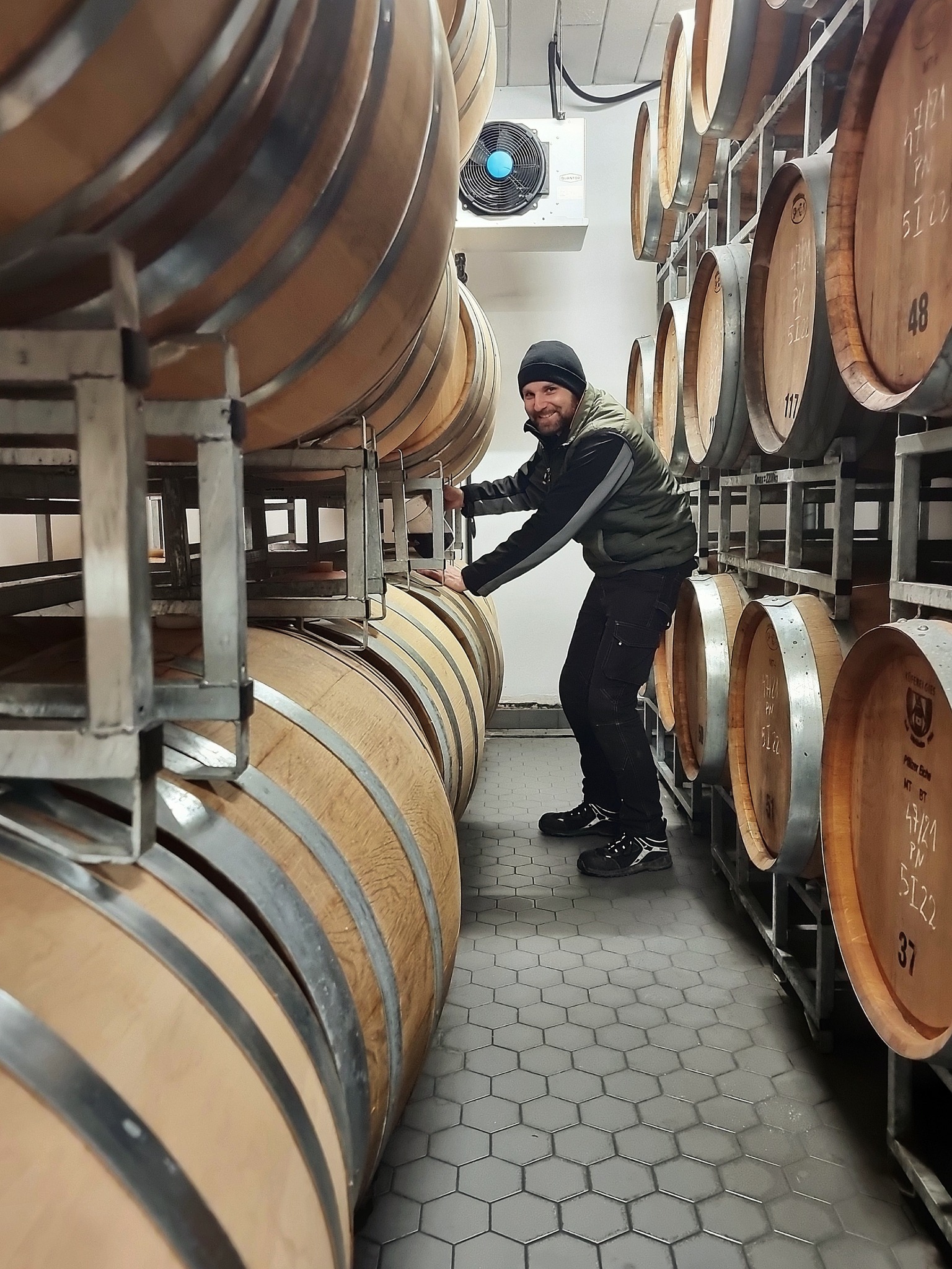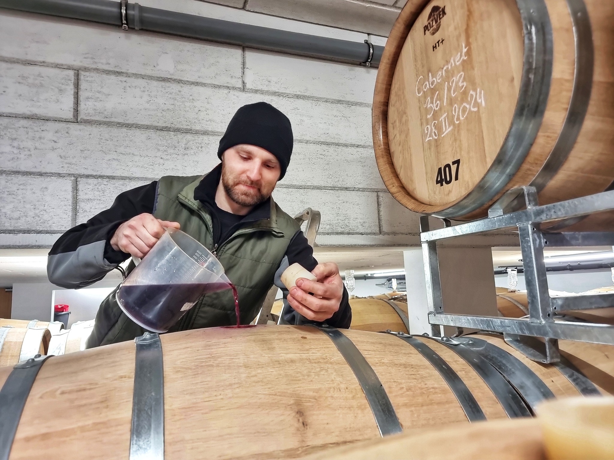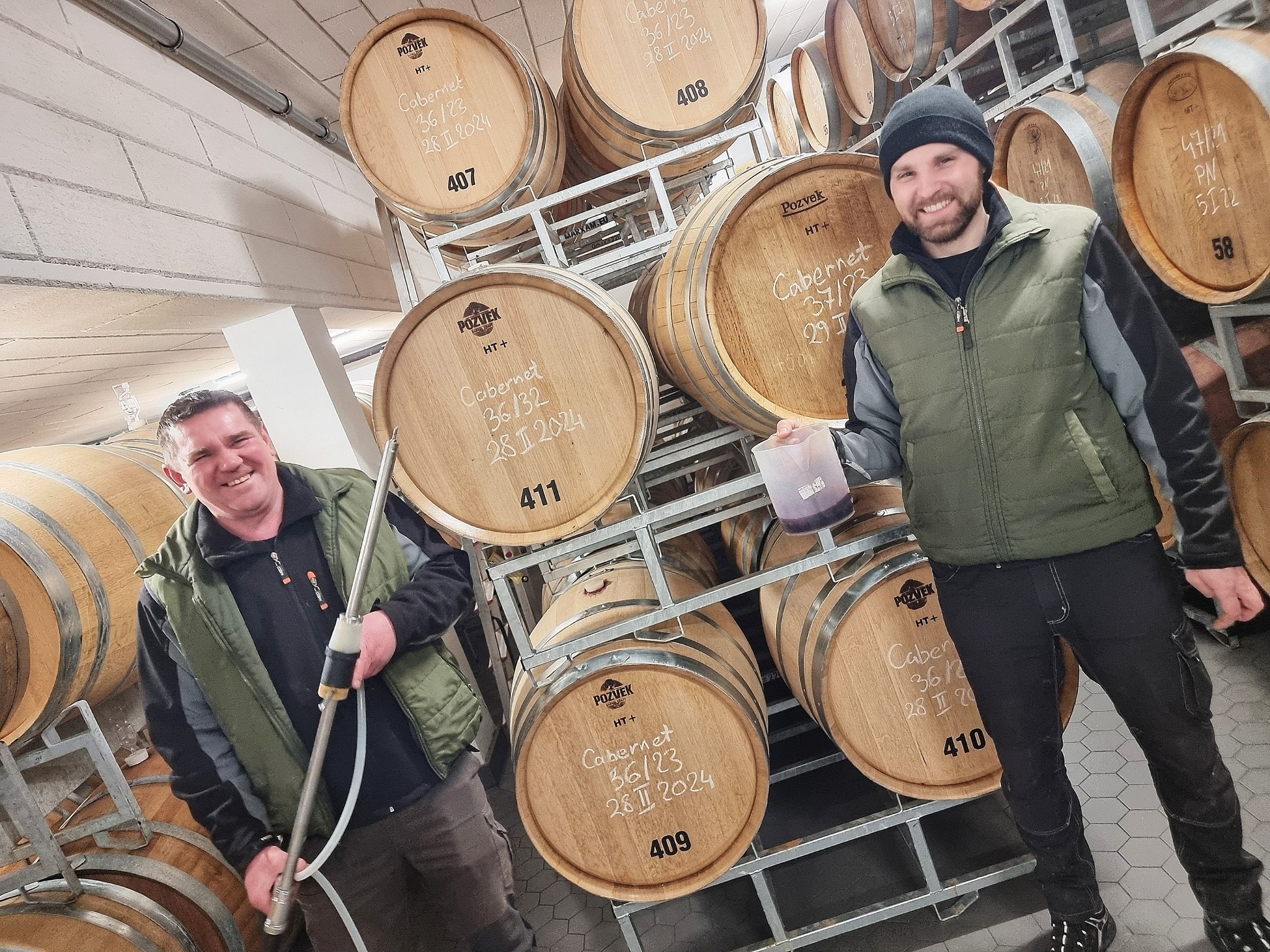 Beczki opuścił właśnie rocznik 2021 naszego Caberneta, a wprowadził się do nich rocznik 2023. To oznacza, że ten pierwszy trafi do sprzedaży za kilka miesięcy, ten drugi – w roku 2026.