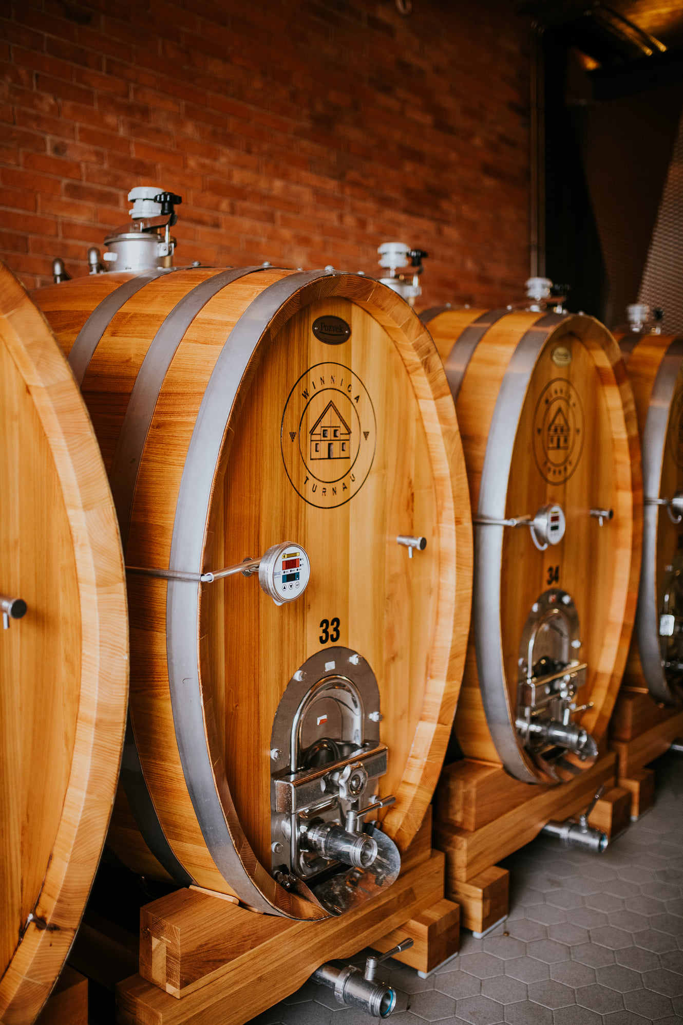 W naszej winiarni znajdziecie duże beczki akacjowe i dębowe oraz klasyczne 225-litrowe barriques. W tych pierwszych dojrzewa m.in. nasz Riesling, w drugich – Pinot Noir i Chardonnay.