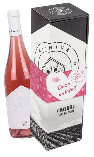 W skład zestawu prezentowego przygotowanego przez naszą winnicę wchodzą butelka półwytrawnego wina różowego Rose 2018 w ozdobnym kartoniku z owijką oraz nalewakiem do wina.